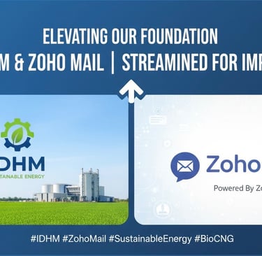 IDHM is pleased to confirm the transition of our official email platform to Zoho Mail. This technology upgrade is a key step in strengthening our operational foundation. By enhancing security and communication efficiency, we can focus all our energy on scaling our sustainable Bio-CNG and circular economy projects. A move that supports our growth and our commitment to excellence.